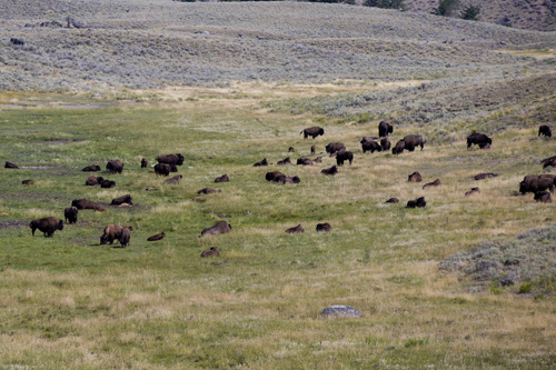No segundo dia (26/07/15) nós passamos pelo Albright Visitor Center, que está situado em um antigo complexo militar. De lá seguimos até a entrada noroeste pois no caminho seria possível ver alguns bisões, e de fato vimos muitos. Legal pensar que os bisões foram caçados até quase a total extinção, mas hoje existem mais de 4.000 bisões caminhando livremente pelo parque.