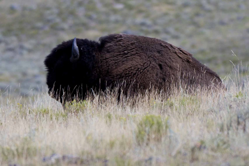 No terceiro e último dia zanzando pelo parque fizemos o trecho de oeste a leste e rodamos mais uma centena de quilômetros de lindas paisagens. Estávamos animados, certos de que iríamos encontrar os moradores mais ilustres do parque, e ficamos esperançosos quando o trânsito parou, mas no final era apenas um bisão que resolveu passear pela estrada.